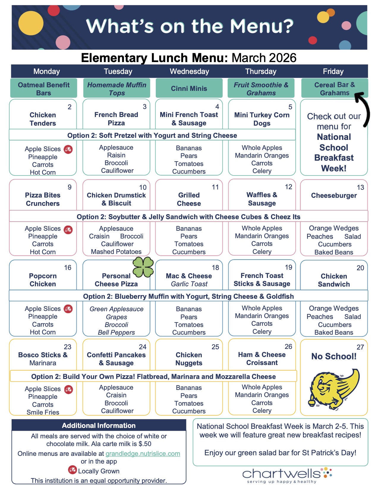 Please help us feed the teachers for conferences on March 3rd. We will be ordering food for them. Please review the available slots and click on the button to