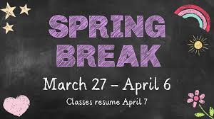 Spring Break is here! I hope all of you have a safe and enjoyable break.