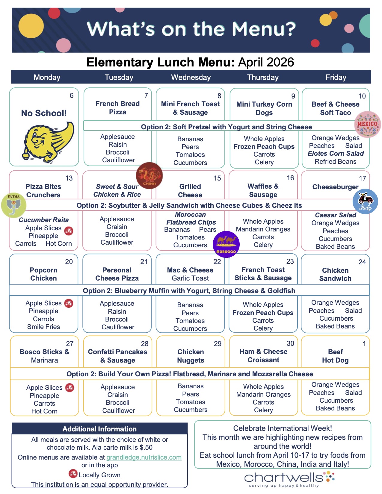 learning opportunities, and a lot more! The monthly lunch menu is the final item in every newsletter.