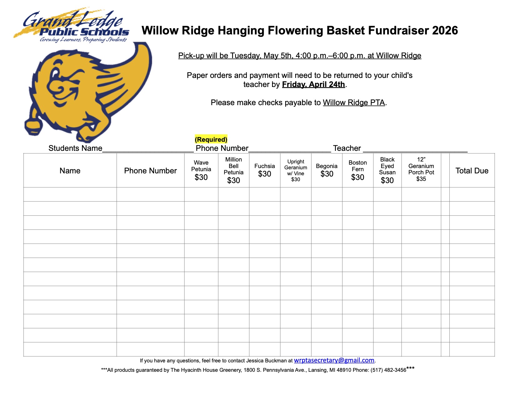 The office needs to be notified if your child will be absent or tardy. You can leave a voice message on the attendance line at 517-925-5812. In that message, please leave the following information: